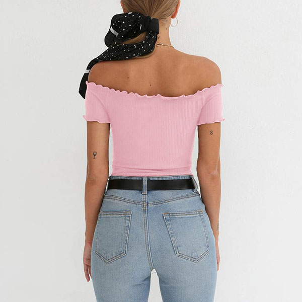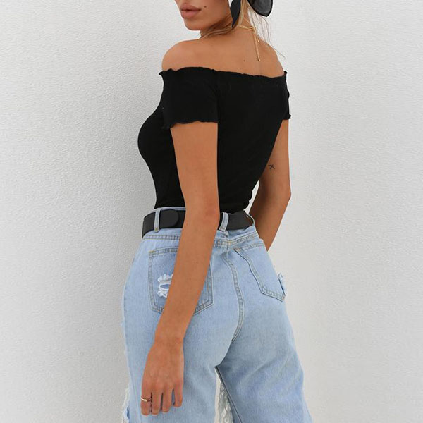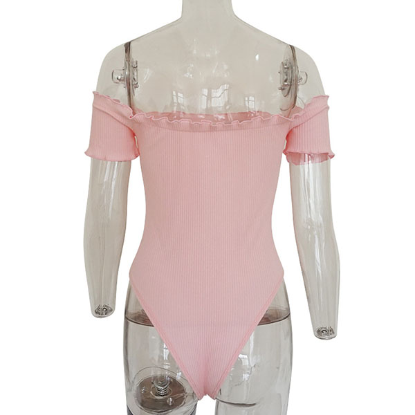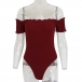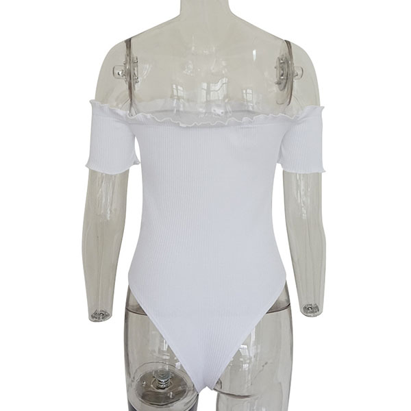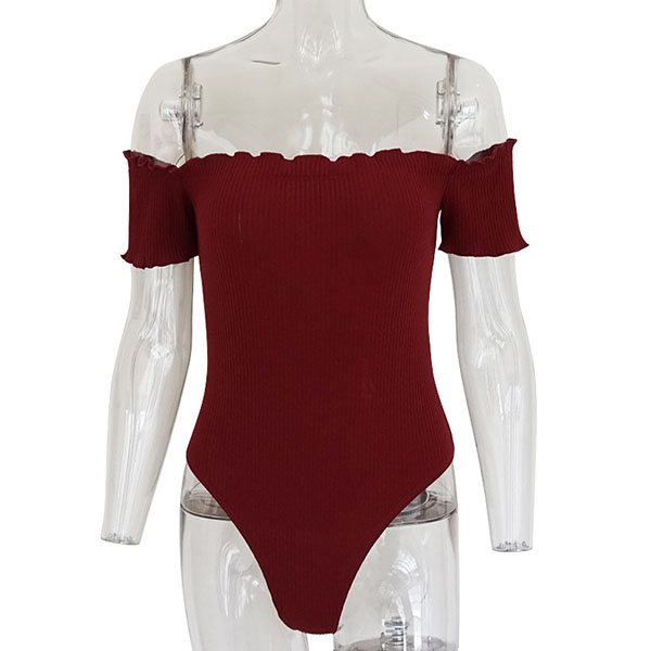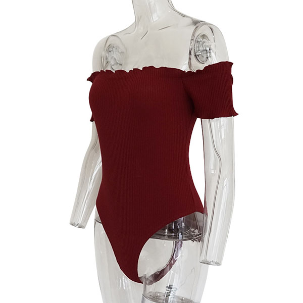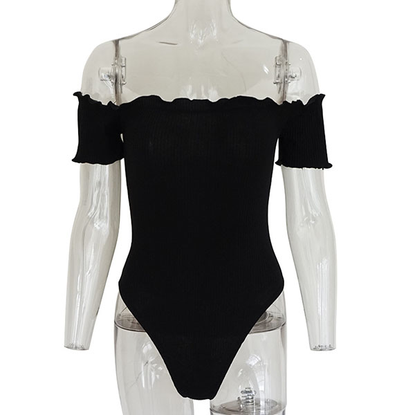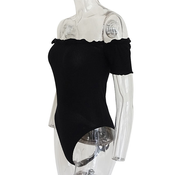 Sexy Off-shoulder Boat Neck Short Sleeve Solid Color Bodysuit
