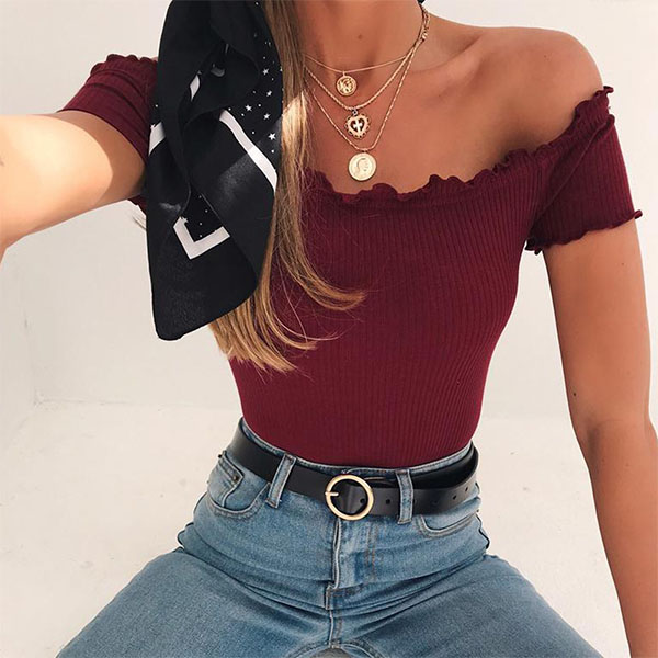 This bodysuit can showcase your perfect figure with its tight silhouette. Solid color style,the off-shoulder boat neck design can offer you a sexier look. You can match with your high waist bottoms like shorts,skirt or jeans to achieve for a stylish and charming style.