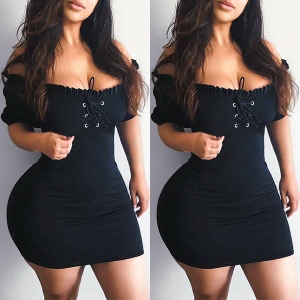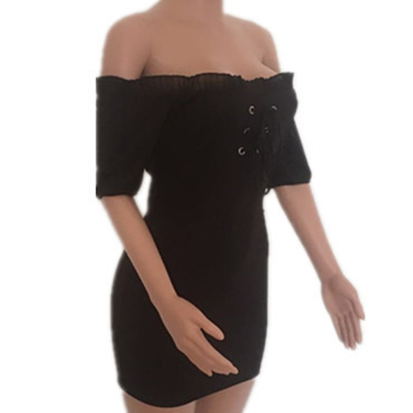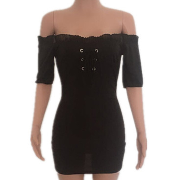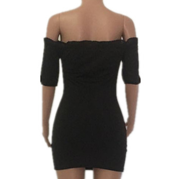 Sexy Off-shoulder Boat Neck Short Sleeve Solid Color Slim Fit Dress