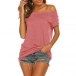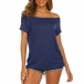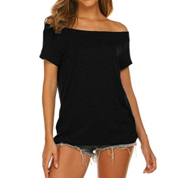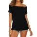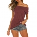 Sexy Off-shoulder Boat Neck Short Sleeve Solid Color T-shirt