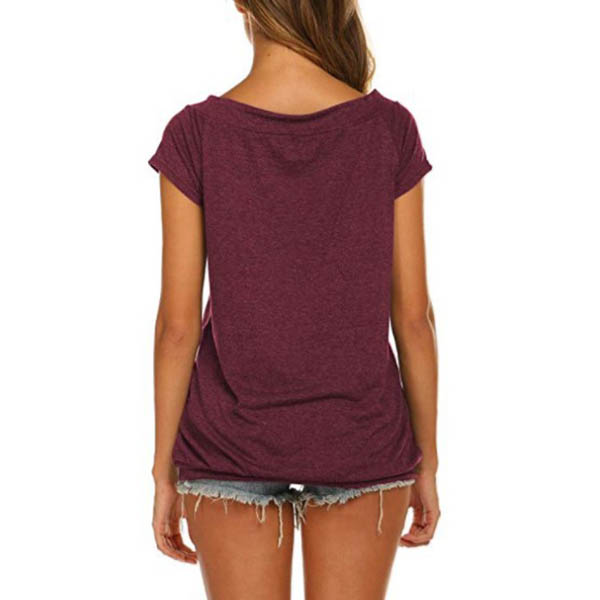 Solid color tone design makes this piece look simple,stylish yet generous,while the of-shoulder boat neck design can lend you a dash of flirty vibes. You can trust in this t-shirt to have a stylish and charming daily look.