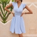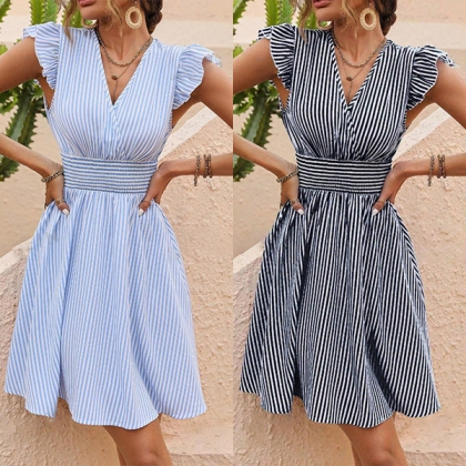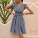 Sexy Off-shoulder Boat Neck Short Sleeve Striped Dress