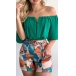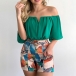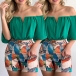 Sexy Off-shoulder Boat Neck SHort Sleeve Top + High Waist Printed Shorts Two-piece Set