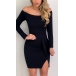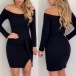 Sexy Off-shoulder Boat Neck Slit Hem Long Sleeve Solid Color Slim Fit Dress