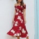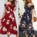 Sexy Off-shoulder Boat Neck Slit Hem Printed Dress