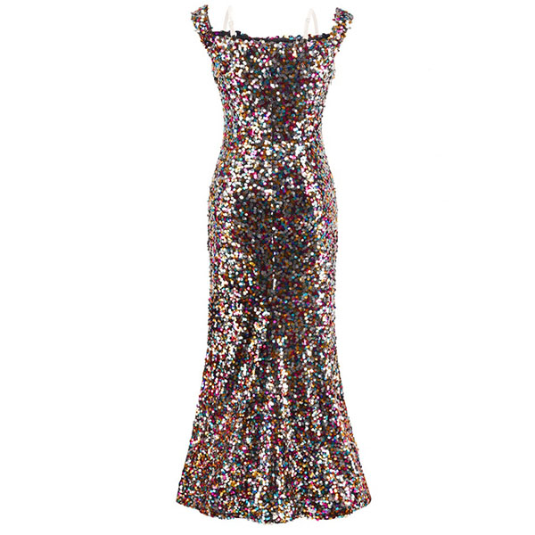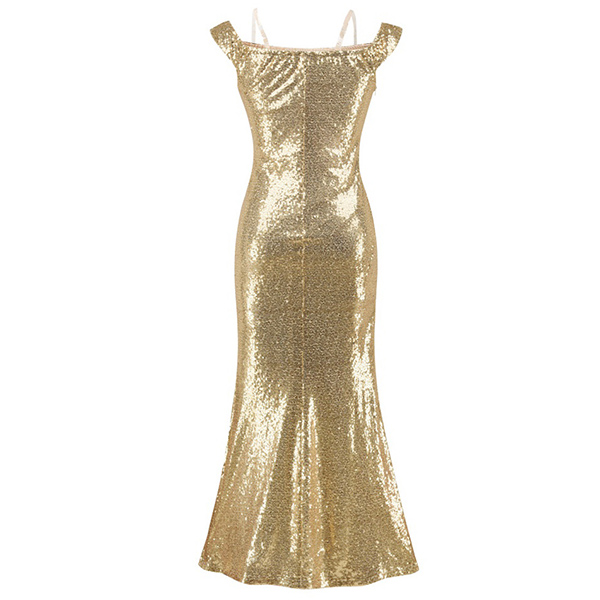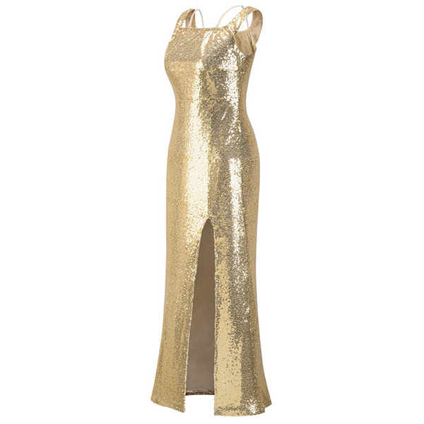Be it a prom queen or the party queen, no girl can achieve that status without a stunning dress. Perhaps this dress will help you achieve that. The sequin details make it look so shinning,while the off-shoulder boat neck and slit hem design will lend you a sexy and flirty look. Paired with your sexy heels and sparkle necklace,you can't be more stunning!
