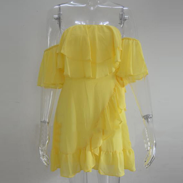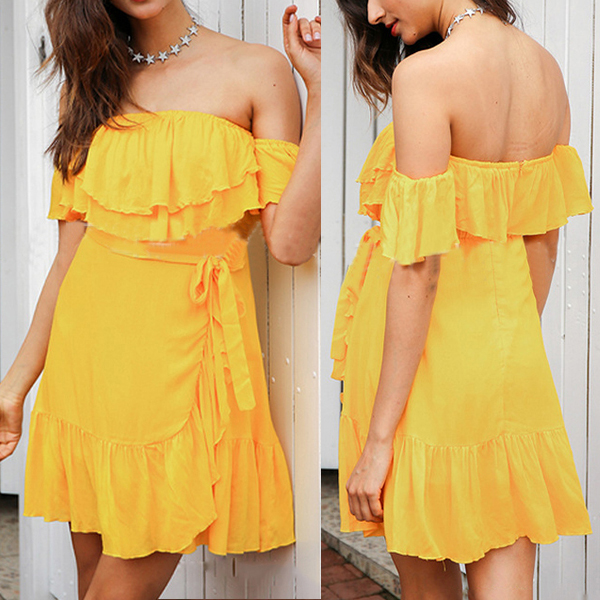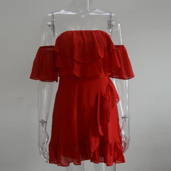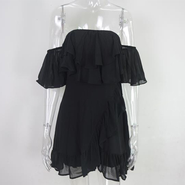 Solid color style,accompanied with an off-shoulder boat neck and ruffle details,this dress knows how to demonstrate your