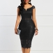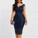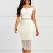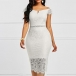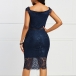 Sexy Off-shoulder Boat Neck Solid Color Slim Fit Lace Dress