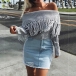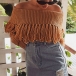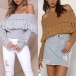 Sexy Off-shoulder Boat Neck Solid Color Tassel Sweater