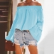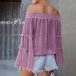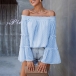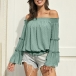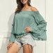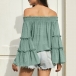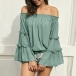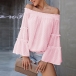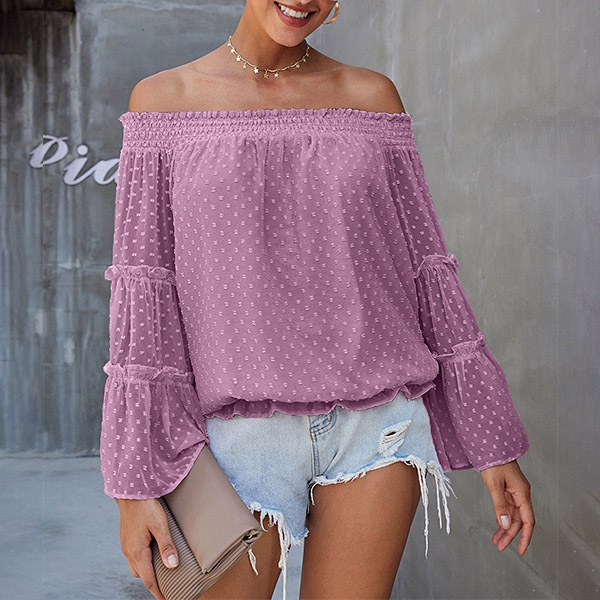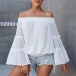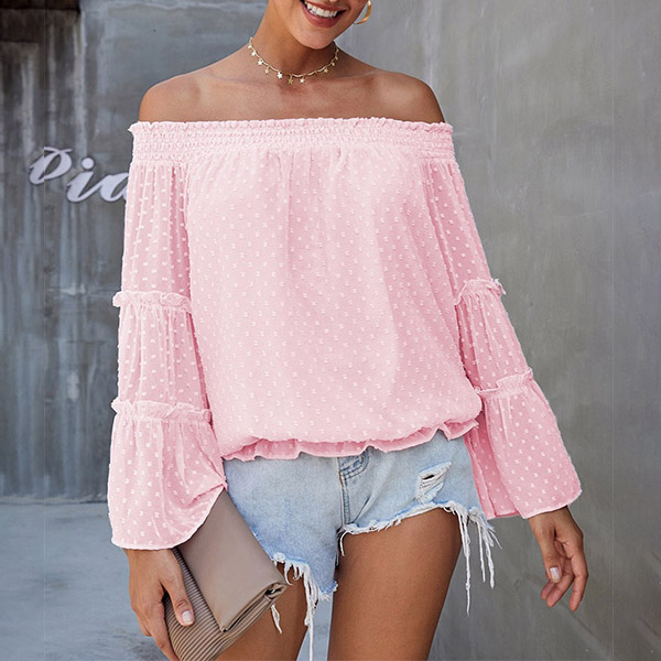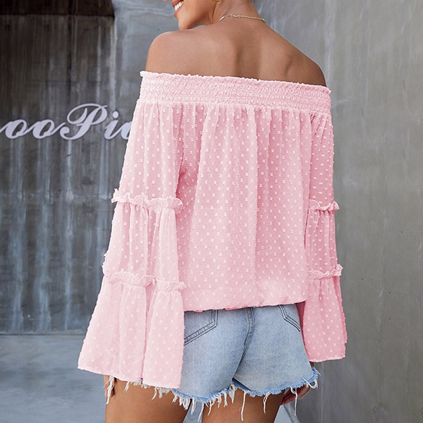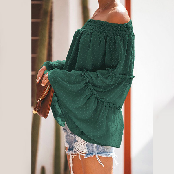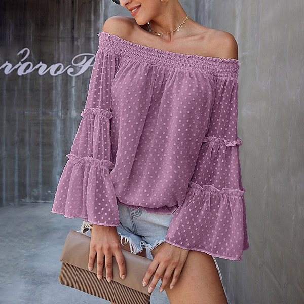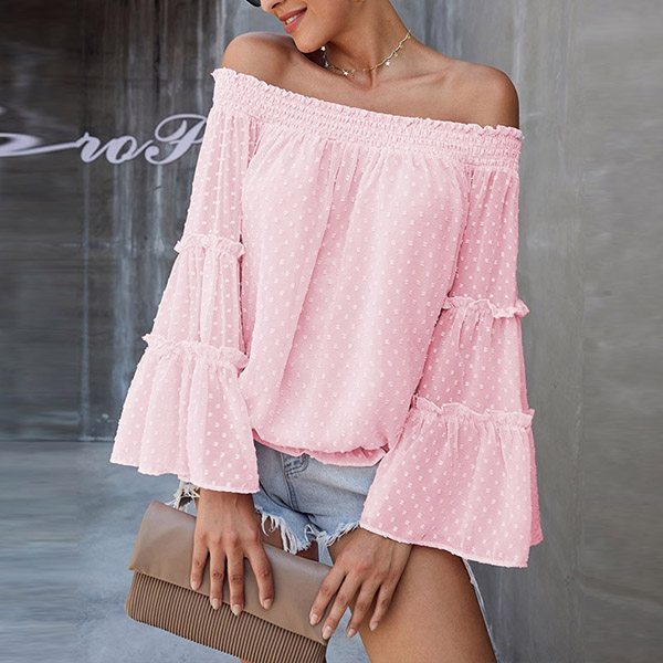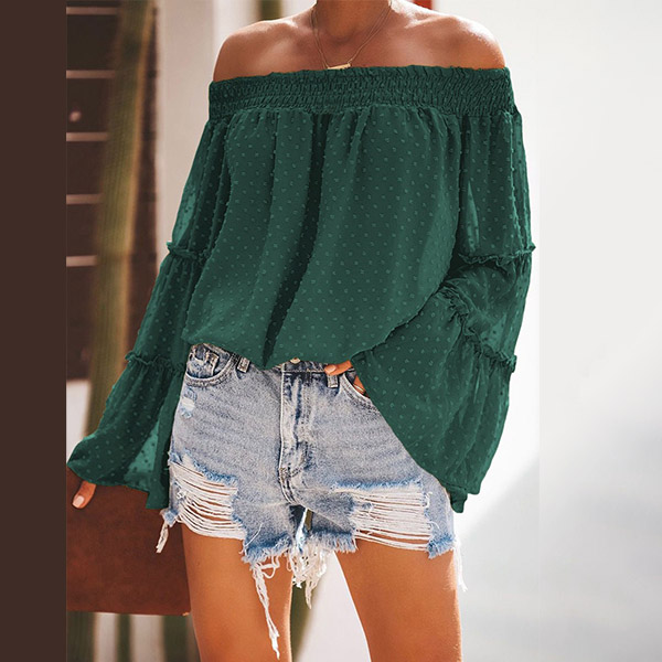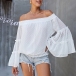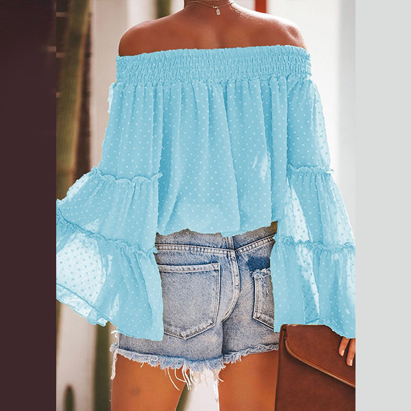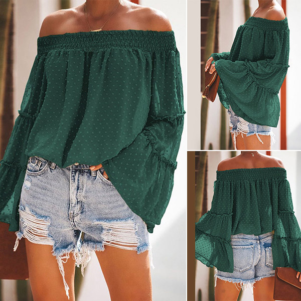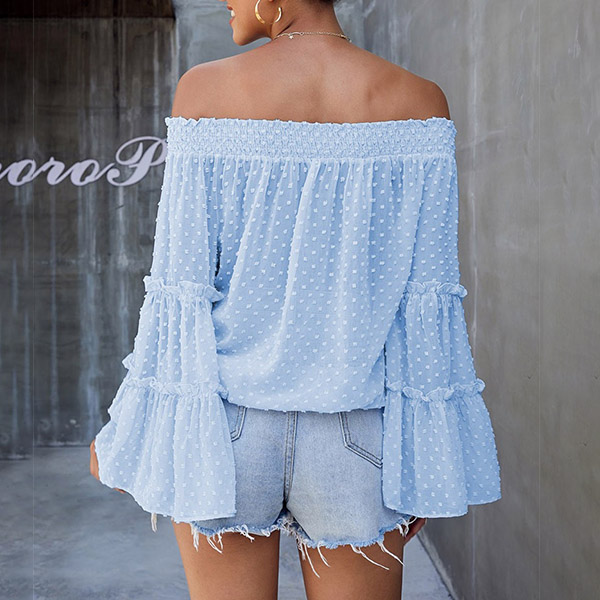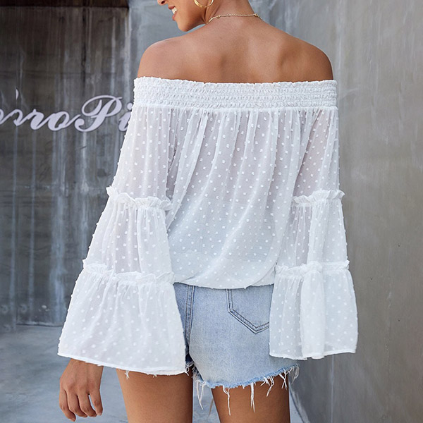 Sexy Off-shoulder Boat Neck Trumpet Sleeve Chiffon Top