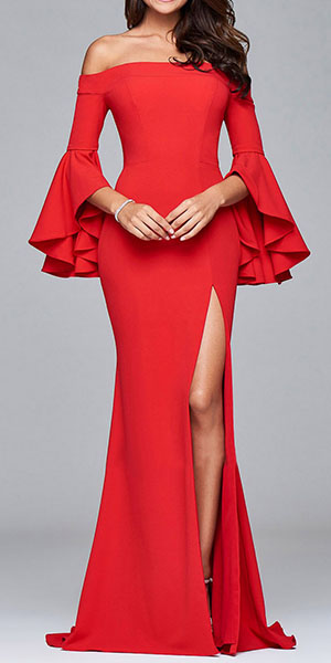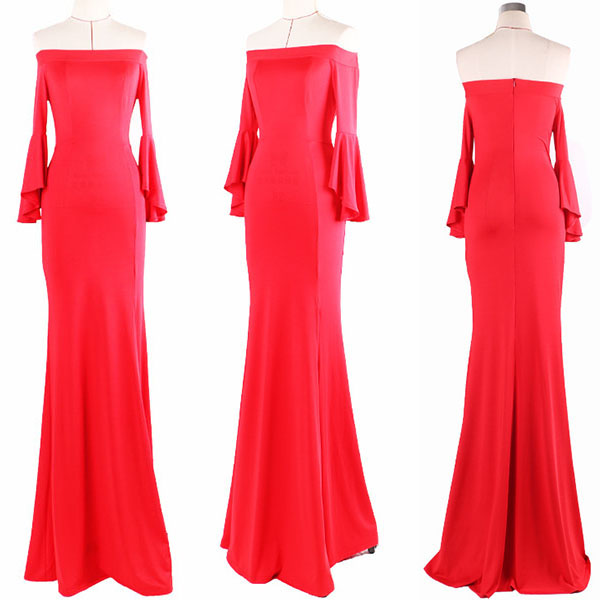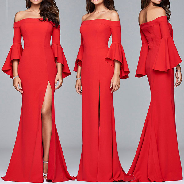 trumpet sleeve and a high slit hem,sexy and seductive. There is no doubt that all the eyes would be focused