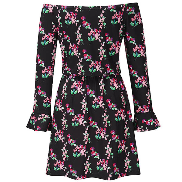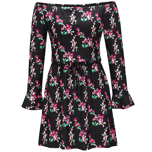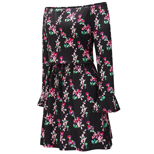 Add a touch of beauty to your look with this dress. Boasts vibrant floral print,the trumpet sleeve and off-shoulder boat neck design can offer you a sexier look. For your weekend trips,you can trust in this dress to express your beauty and charm.