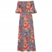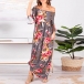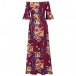 Sexy Off-shoulder Boat Neck Trumpet Sleeve Printed Maxi Dress