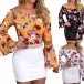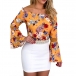 Start your wonderful day with a wonderful piece such as this top. It features vibrant floral print details,the off-shoulder boat neck and trumpet sleeve design make this piece full of sexy and flirty vibes. You can match with a high waist pants and choker necklace to have a charming look.