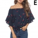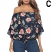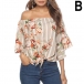 Sexy Off-shoulder Boat Neck Trumpet Sleeve Printed Top