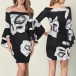 Sexy Off-shoulder Boat Neck trumpet Sleeve Slim Fit Printed Dress