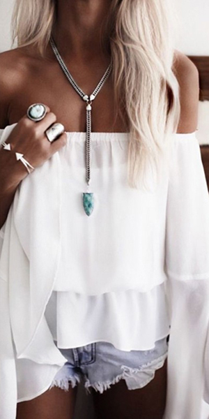 No need a second glance,you would be attracted by this chiffon top. Features a pure white tone,accompanied with an