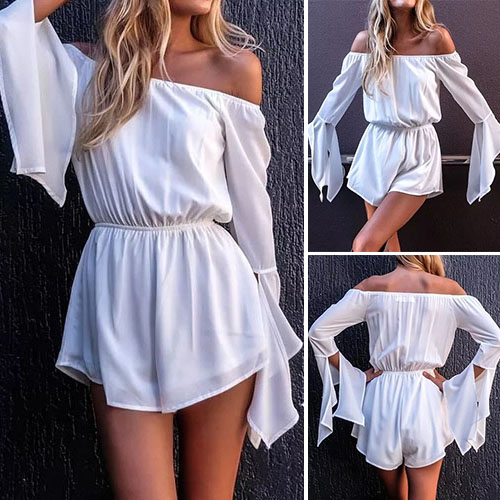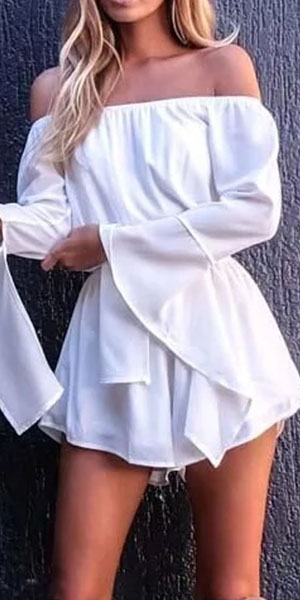 its off-shoulder boat neck and trumpet sleeve design makes this piece look so attractive and distinctive,while its elastic waist and