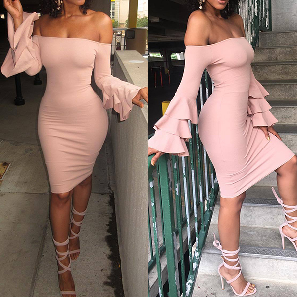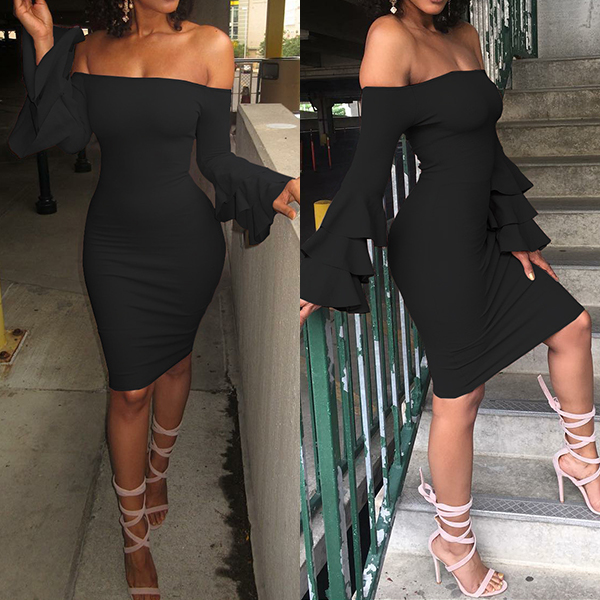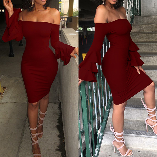 while the off-shoulder boat neck and trumpet sleeve design will bring you a more alluring look. Meanwhile,its super fit