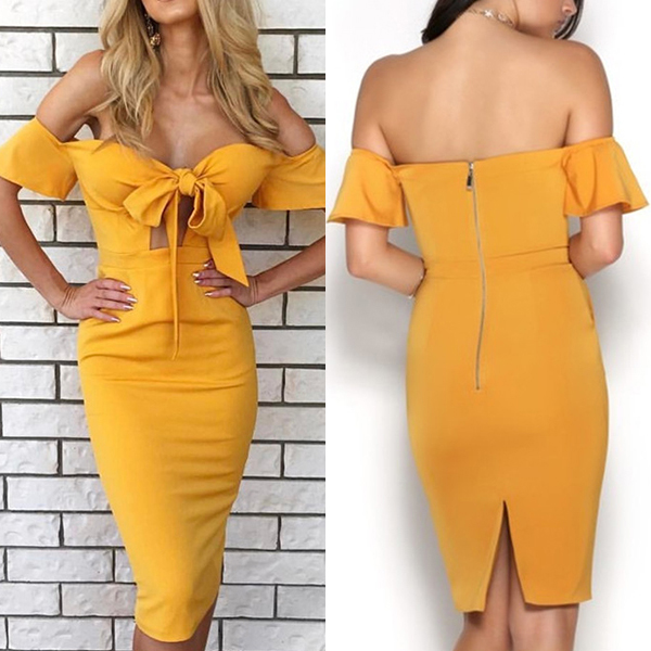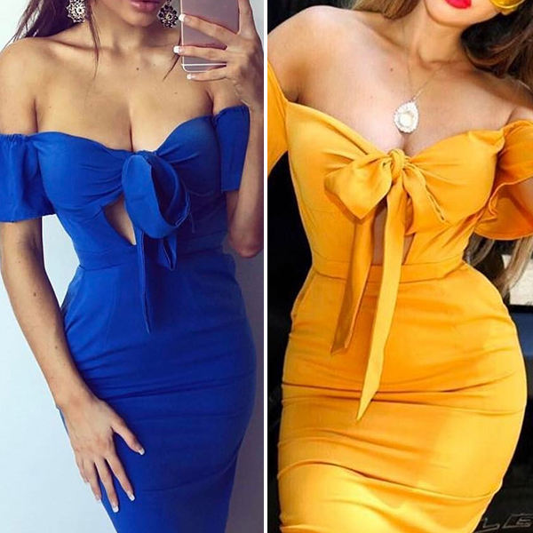 the off-shoulder and bowknot design make this dress look so sexy and seductive,while the fit silhouette