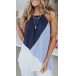 Sexy Off-shoulder Contrast Color Loose Sling Halter Top