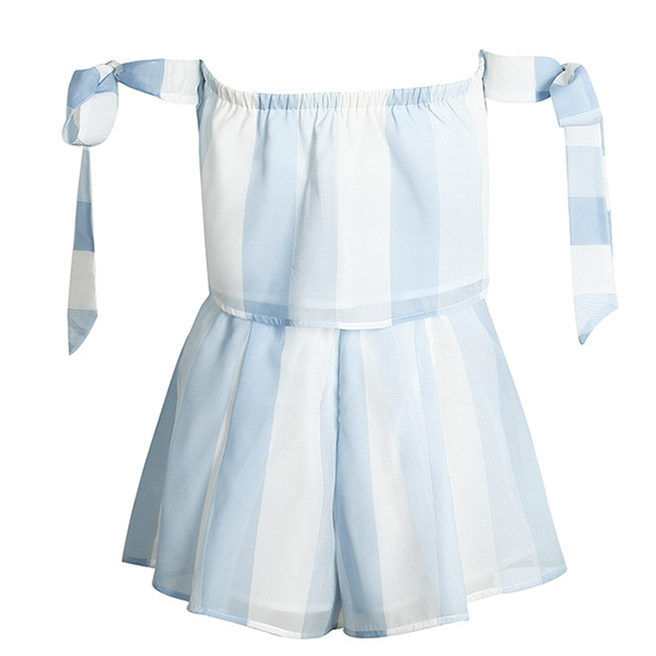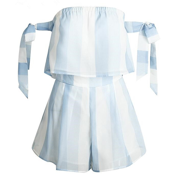 When you wanna try a different way to demonstrate your summer style,you can opt or this two-piece set. Striped style,