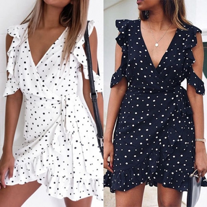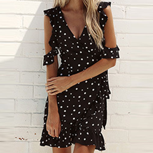 It is a wise investment to add this dress to your wardrobe. Dots printed details make this piece look so eye-catching,