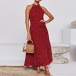 Looks extra charming and beautiful with this dress from day to night. The dots printed details can offer you a playful and stylish style,while the off-shoulder and halter design can exude your sexy and feminine appeal. So why not invite one to your wardrobe?