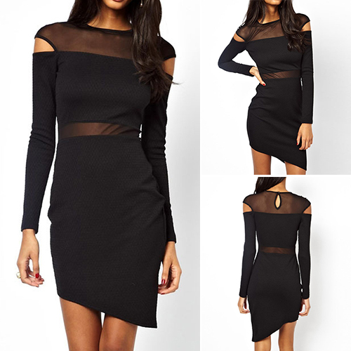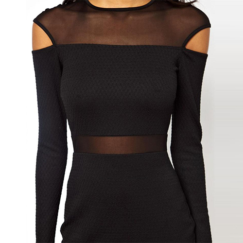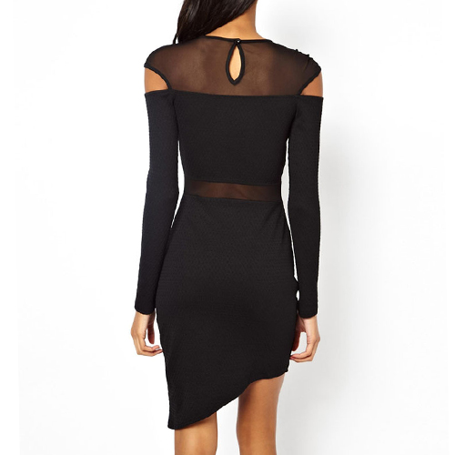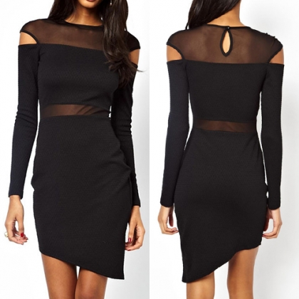 A long sleeve dress with off-shoulder and gauze spliced design,sexy and charming. Outfitted