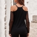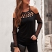 Sexy Off-shoulder Gauze Spliced Long Sleeve Hollow Out Sling T-shirt