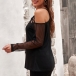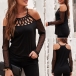 This t-shirt comes with a flattering,classic black tone,its soft and breathable fabric can give you a comfortable day,while the off-shoulder,gauze spliced long sleeve and hollow out details will make this piece full of sexy and flirty vibes. You can update your style by wearing this piece.