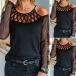 Sexy Off-shoulder Gauze Spliced Long Sleeve Hollow Out T-shirt