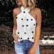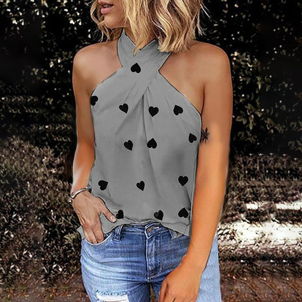 You can expose your charming skin with this wonderful top in these sun-soaked summer days. Halter style and off-shoulder design can offer you a sexy and alluring look,while the heart printed details will make this piece look more eye-catching. Try to match with your shorts to have a charming summer look.