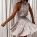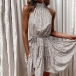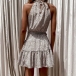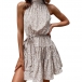 Sexy Off-shoulder High Collar Ruffle Hem Printed Dress
