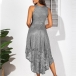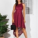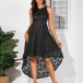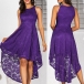 There is no doubt that your elegant and charming image can be portrayed in this lace dress. The high-low hem design makes this piece look so distinctive and attractive. Finished with high waist and off-shoulder design,this dress is sure to make you look sultry and flirty. Perfect fit for your parties and gatherings.