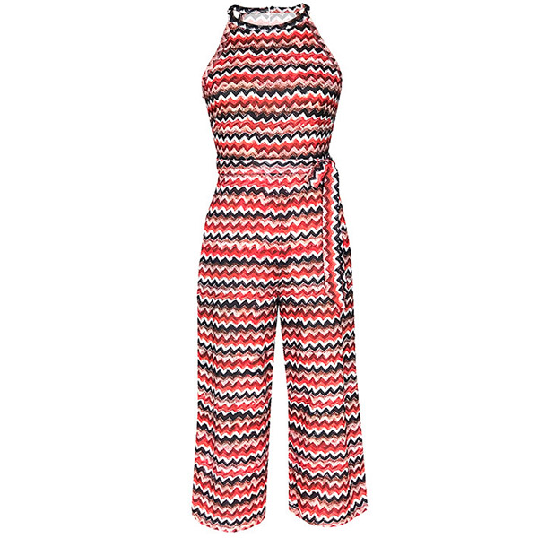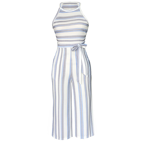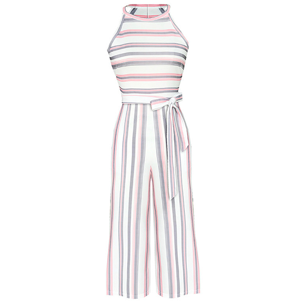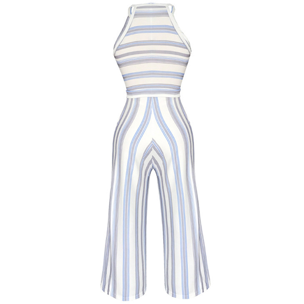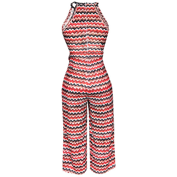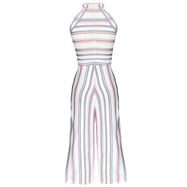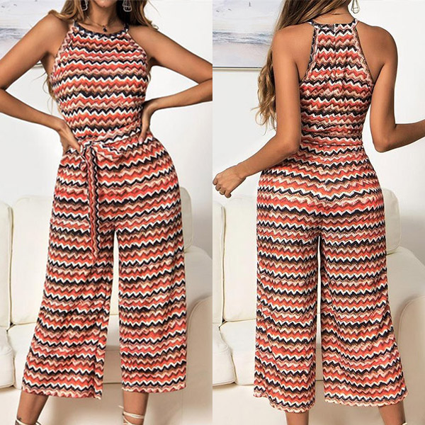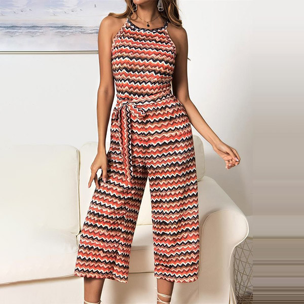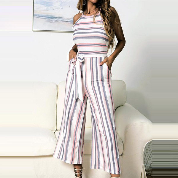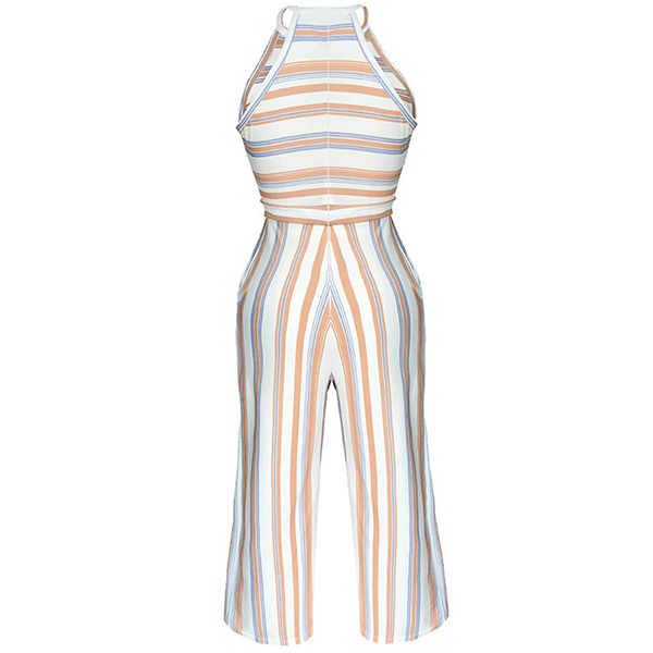 Sexy Off-shoulder High Waist Colorful Striped Printed Wide-leg Jumpsuit