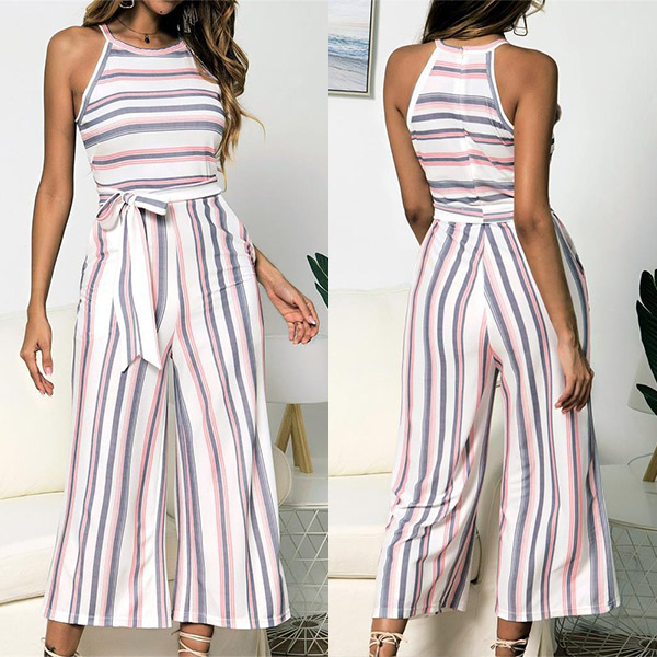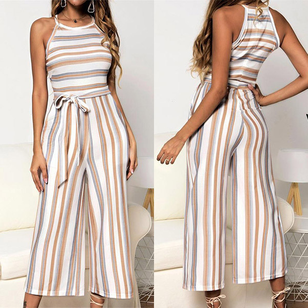 For moments when you're short of time for wardrobe mix and match,then this jumpsuit can be your perfect solution. Sling and off-shoulder design can make you look sexy and flirty,while the high waist and wide-leg silhouette design can better showcase your slender figure. For the sun-soaked summer days,this piece would easily strike your mind.