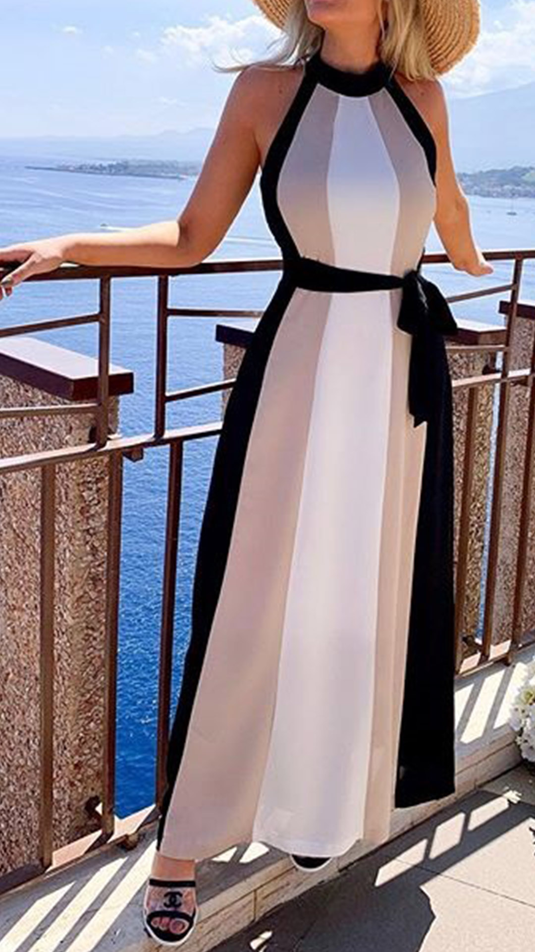 Sexy Off-shoulder High Waist Contrast Color halter Maxi Dress