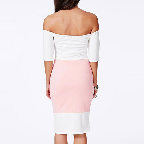 dress on hand. Contrast color style,designed with an off-shoulder wide neckline,high waist and a fit silhouette,