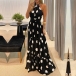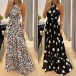 You can easily be a pleasant sight to draw more attention when you dress yourself up with this halter dress. The leopard/dots printed details make this piece look so eye-catching. Finished with high waist and a maxi length,this dress is a good chance to showcase your slender figure. For some fancy events,you can trust in this dress to gain more eyes.