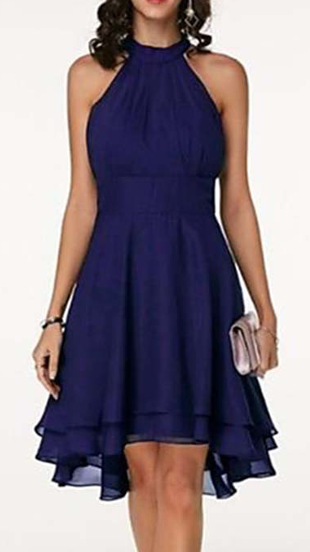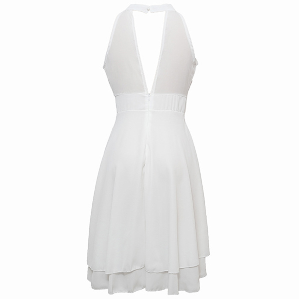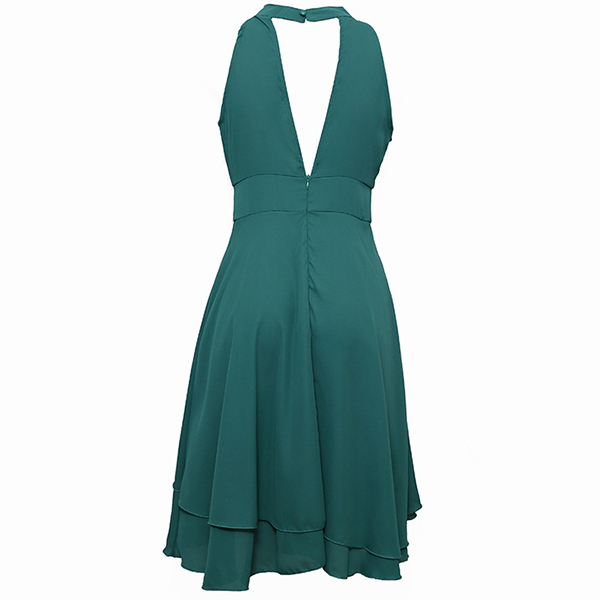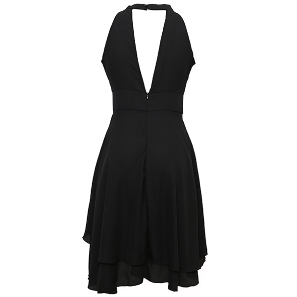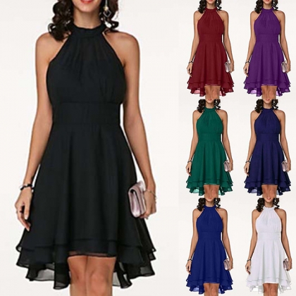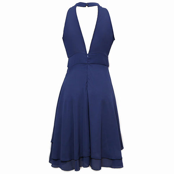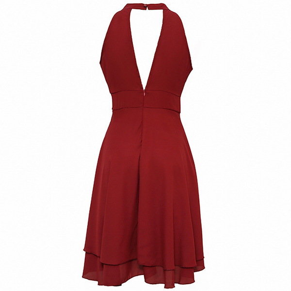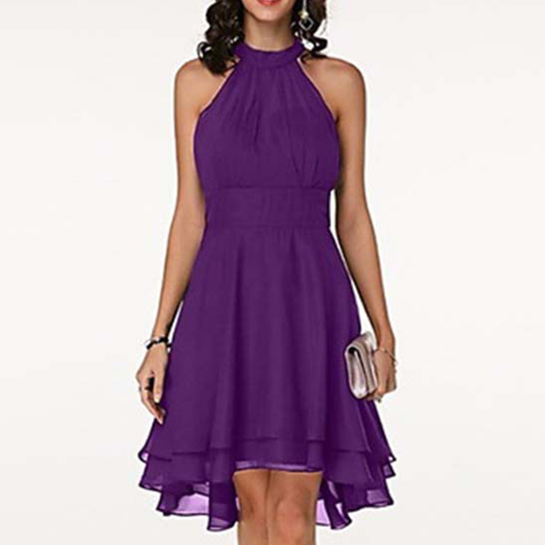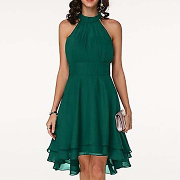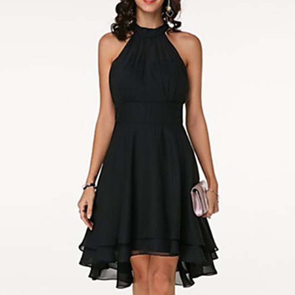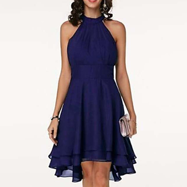 As for a sweet and charming dating look or weekend look,you can just have a look at this dress. Halter style,the off-shoulder design can lend you a dash of sexy and flirty vibes,while the dual-layer ruffle hem design will further enhance its charm. Dress it up with your sexy heels,you can look charming and beautiful enough!