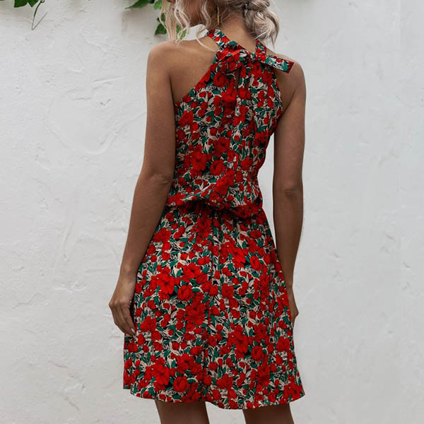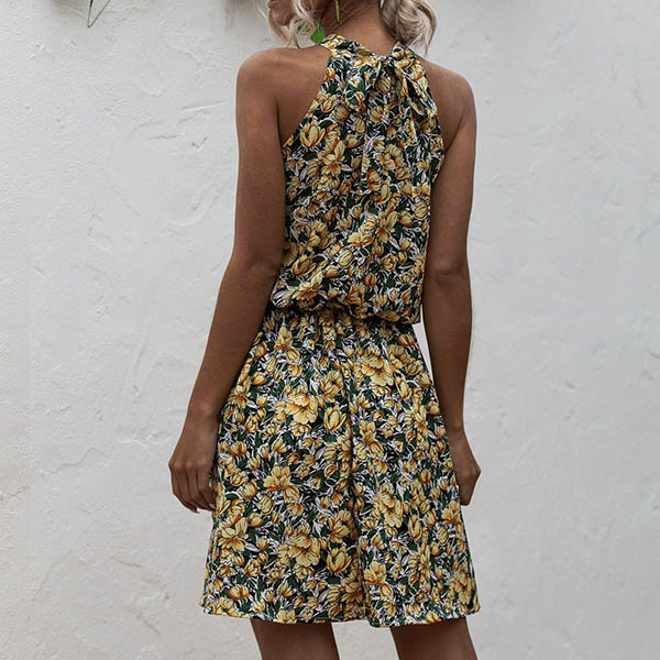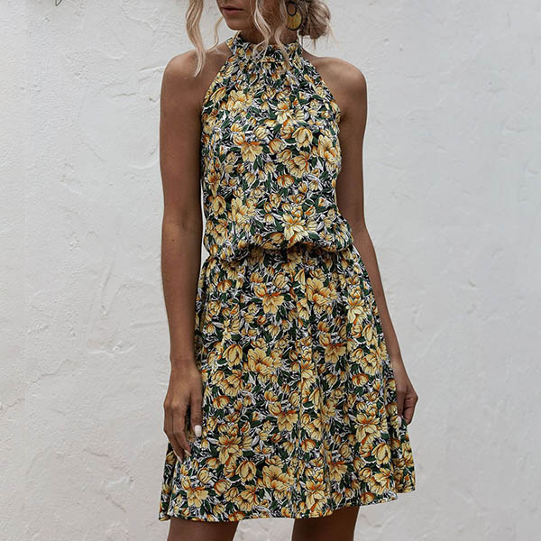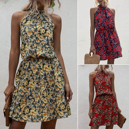 When the summer season hits,your wardrobe calls for such a beautiful and relaxed dress. Its vibrant floral print details make this piece look so eye-catching. Halter style,with off-shoulder design,this dress can easily exude your flirty vibes. When you have a dating,you can trust in this dress to win more eyes.