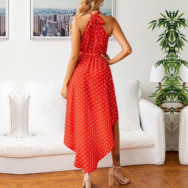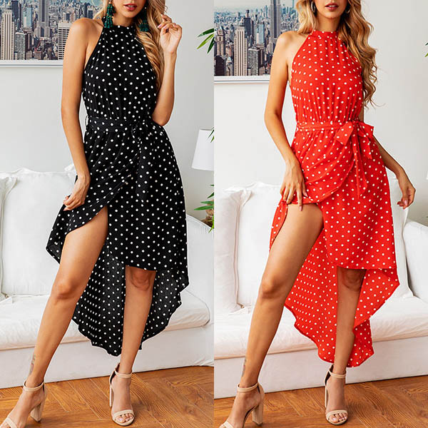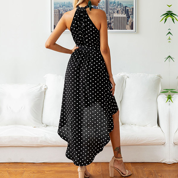 This dress makes it easy for any girl to look effortlessly charming and beautiful. The dots printed details make this piece look so playful and stylish,while the off-shoulder and irregular hem design will further enhance your feminine appeal. Add it to your summer wardrobe ensemble!