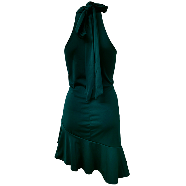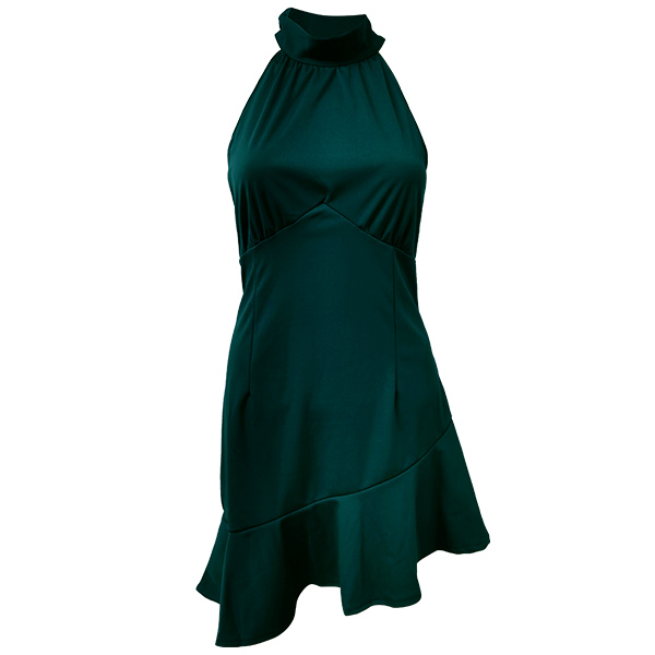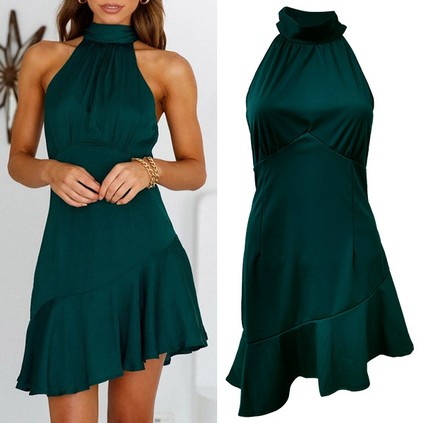 Hey,girls,you need a dreamy and relaxed dress to greet the sunny weekends. So how about this piece? Solid color style,the off-shoulder,irregular ruffle hem and lace-up halter design will offer you a more alluring look. You can just slip into this dress to express your beauty and charm.