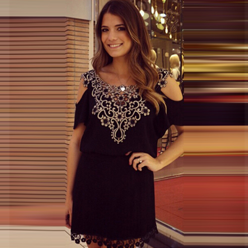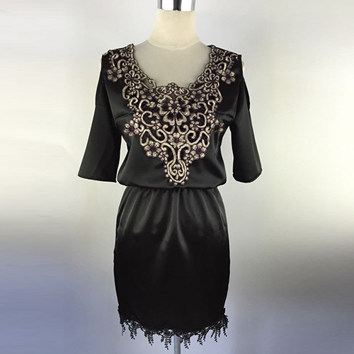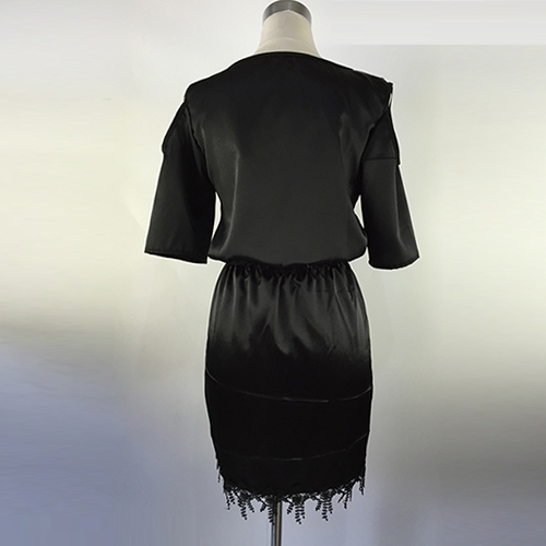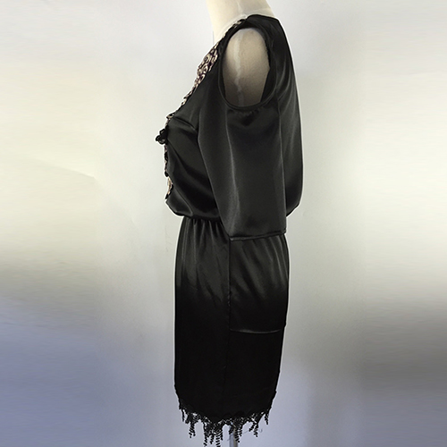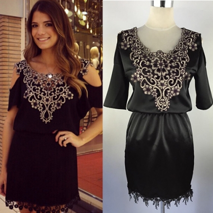 Retro and stylish style. It features lace splice design,off-shoulder style,sexy and charming.