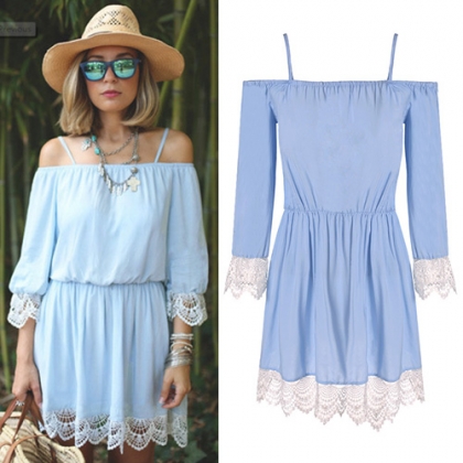 show your charming shoulder. Lace spliced design makes it so feminine. No matter for seaside BBQs,