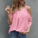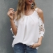 Combines of stylish and flirty vibes,this wonderful top is worth to arouse your attention. Solid color style,the off-shoulder and hollow out lace spliced details make this piece look so flirty and sexy,while its soft fabric and loose silhouette design can give you a comfortable day. Perfect fit for matching with different style bottoms.