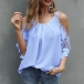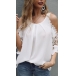 Sexy Off-shoulder Lace Spliced Half Sleeve Round Neck Solid Color Blouse