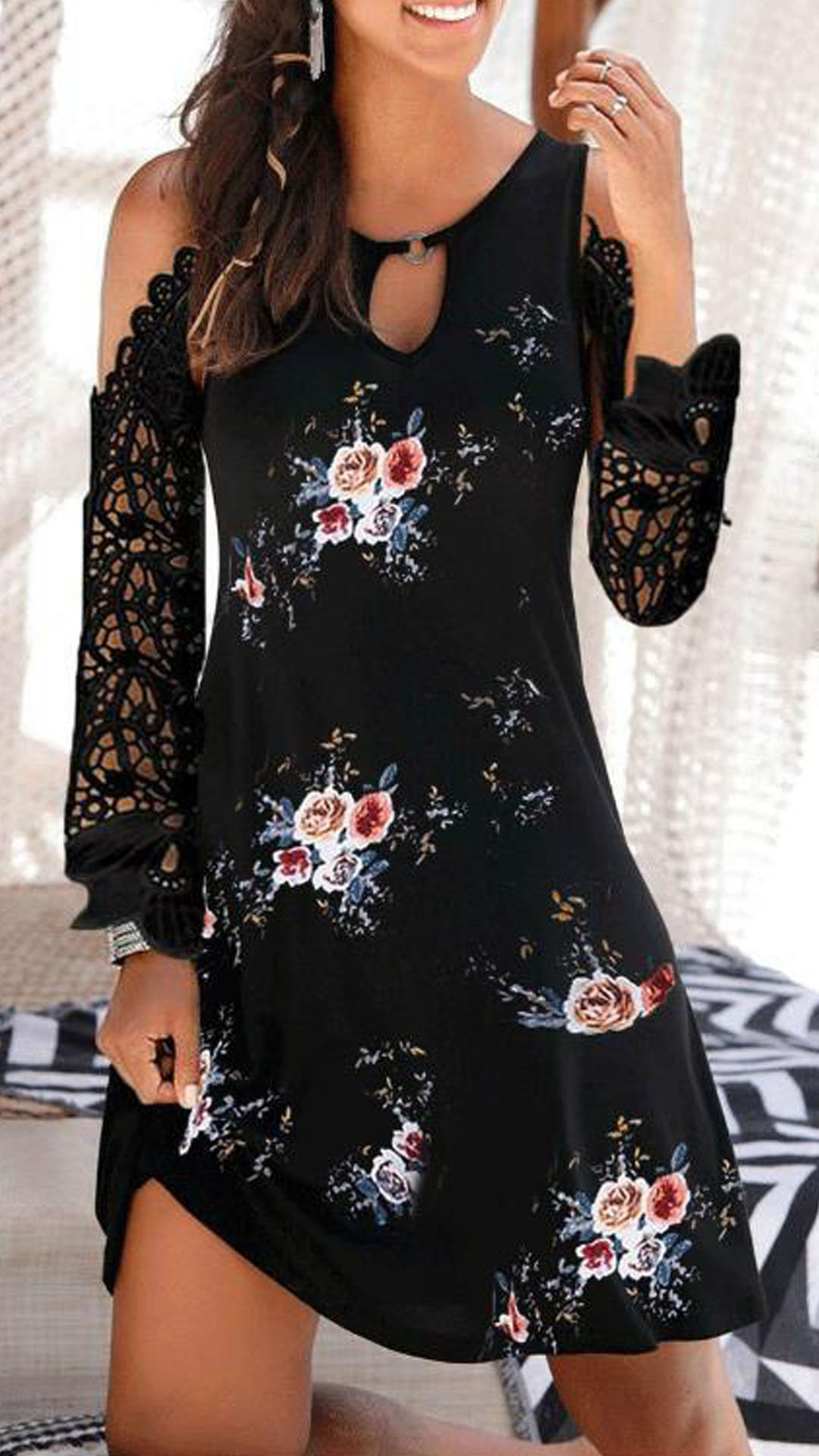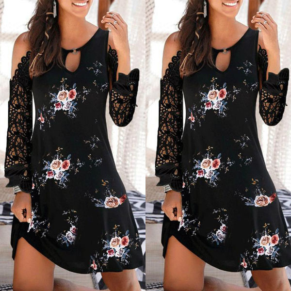 If you are looking for a proper dress for your your afternoon tea time or night dating,then look no further than this piece. The off-shoulder,lace spliced long sleeve and chic printed details make this piece look full style and charm. What you need to do is just throw yourself into this dress and match with your sexy heels,then you can look beautiful enough!