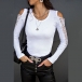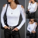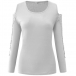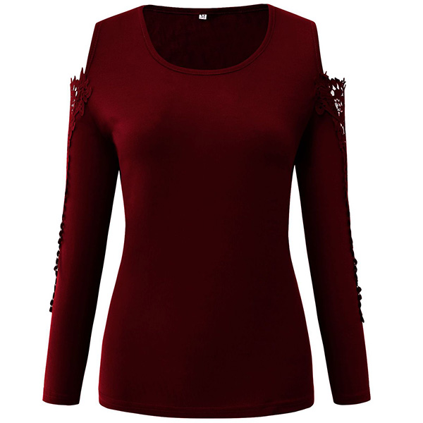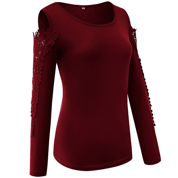 You need a stylish and all-match bottoming t-shirt? Then make your eyes focused on this piece. The off-shoulder and lace spliced details at the sleeve part make this piece full of sexy and flirty vibes. Finished with long sleeve,round neck and a fit silhouette,this t-shirt not only can give you a comfortable day,but also can offer you different matching styles. So why not take interest in it?